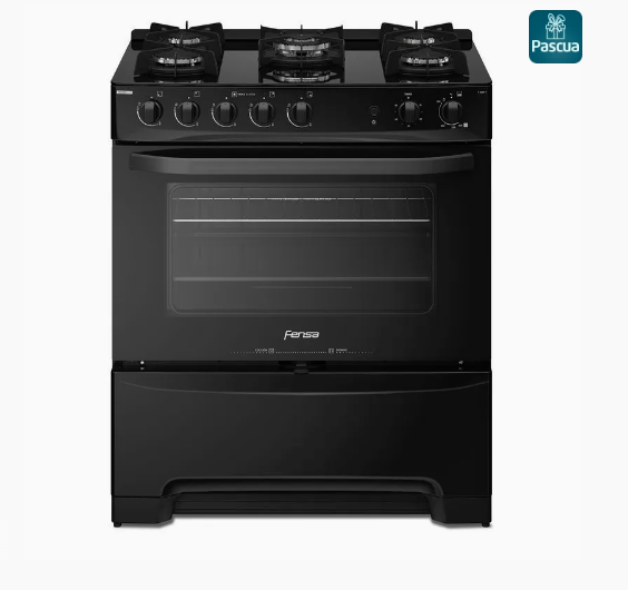 Cocina a Gas 5 Platos Fensa Experience con VaporBake y Cubierta Vidrio F 6000 T Negra