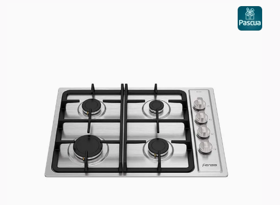 Encimera a Gas 4 Platos Fensa Encendido Eléctrico y Parrilla Hierro Fundido FCE 4HF T Inox